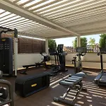 客人可以使用健身课程,健身中心 和屋顶露台. 客人可以在健身中心锻炼身体.